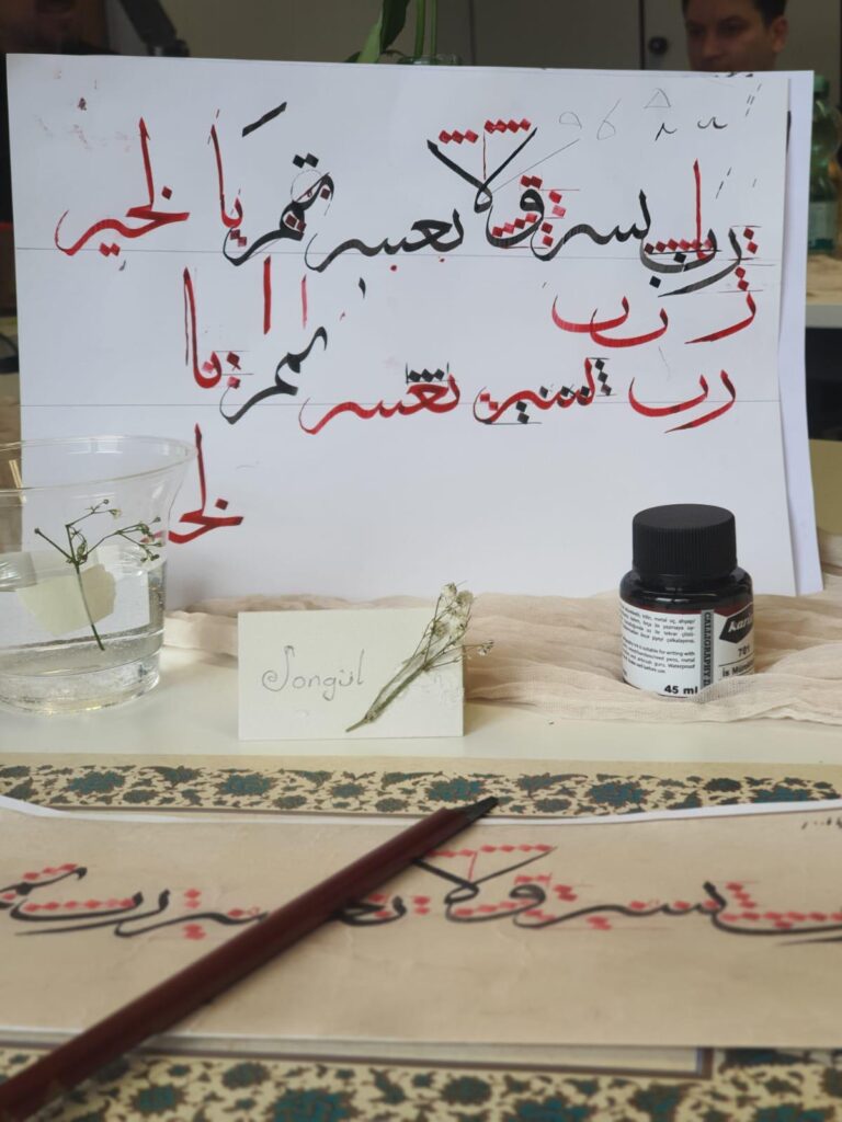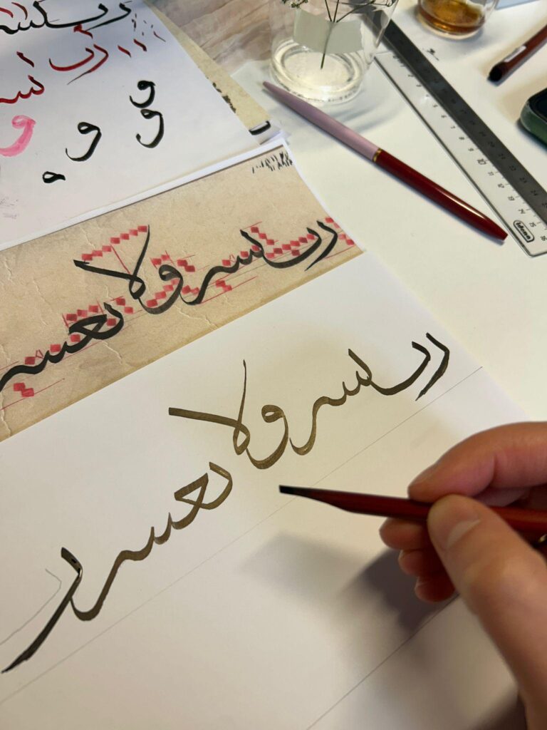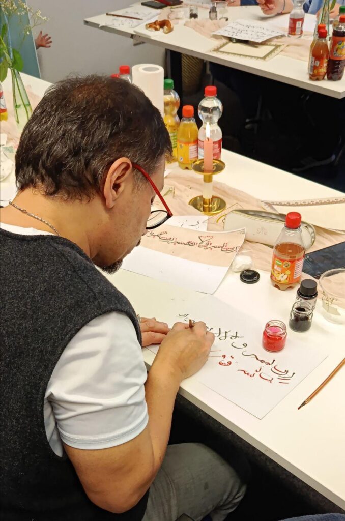 Dialog und Bildung e. V. derneği ile birlikte, hattat Catal eşliğinde özel bir iki günlük Hüsn-i Hat atölyesi gerçekleştirme imkânı bulduk. Samimi bir atmosferde gerçekleşen çalışmada on katılımcı, Türk-İslam hat sanatının (Hüsn-i Hat) temel esaslarını tanıdı ve kalem, mürekkep ve kâğıtla ilk adımlarını attı.