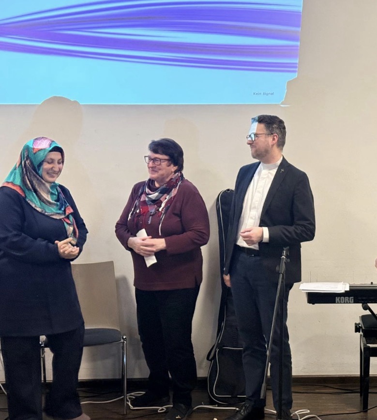 Program sonunda Helferkreis Eibach-Maiach ekibine ve ev sahipliği için Johanneskirche’ye teşekkür hediyeleri takdim edildi. Canlı müzik dinletisi ve Mehmet Faruk Çatal’ın hat sanatı performansı geceye ayrı bir değer kattı.